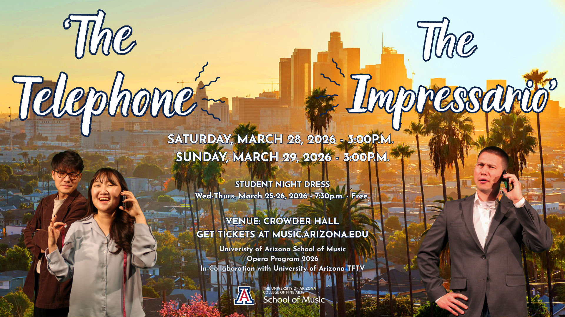 Crowder Hall, University of Arizona, Fred Fox School of Music 1017 N. Olive Rd, TucsonA Bill of One-Act Comedic Operas with Full Orchestra! Gian Carlo Menotti’s The Telephone rings true in the age of constant connection. When Ben drops by to propose to Lucy, he […]